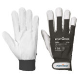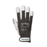 Gant en cuir de chèvre avec fermeture par bandes auto-aggrippantes, dos en coton et bouts des doigts renforcés. Convient aux applications industrielles légères.
