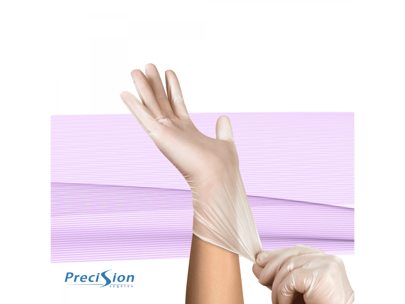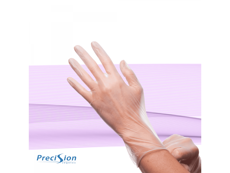 Le gant non poudré Segenyl® en vinyle est transparent et dispose d’une surface lisse et d’une manchette à bord roulé facilitant l’enfilage et le retrait. Il est adapté au contact alimentaire.